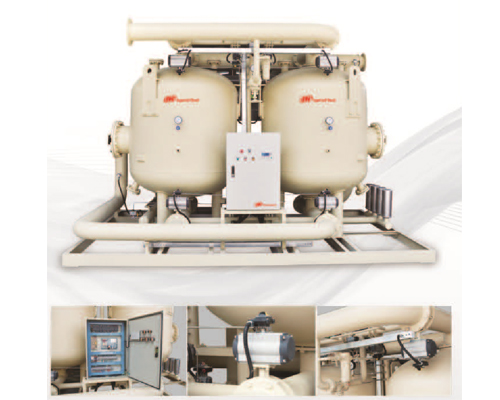 HCR系列压缩热再生吸附式干燥机只能与无油润滑形式的空压机配合使用,因为含油的高温压缩空气用于吸附剂再生时,将使得干燥机内的吸附剂受到污染而失效,影响干燥机的性能;另外由于再生时温度较高,如果长时间积油,也会导致安全的隐患。